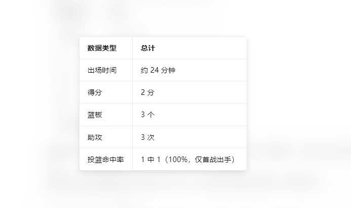 三场世预赛下来,陈明伶累计4中1,场均得分小余1分,场均篮板小余2个。